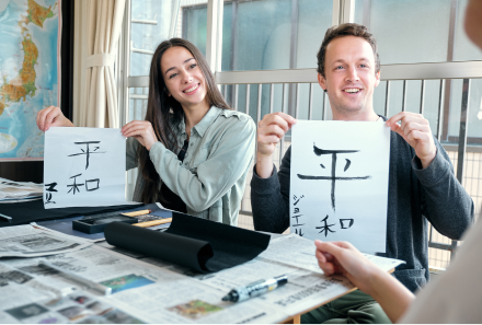 Among foreign tourists visiting Japan, Shodo experience lessons are popular.