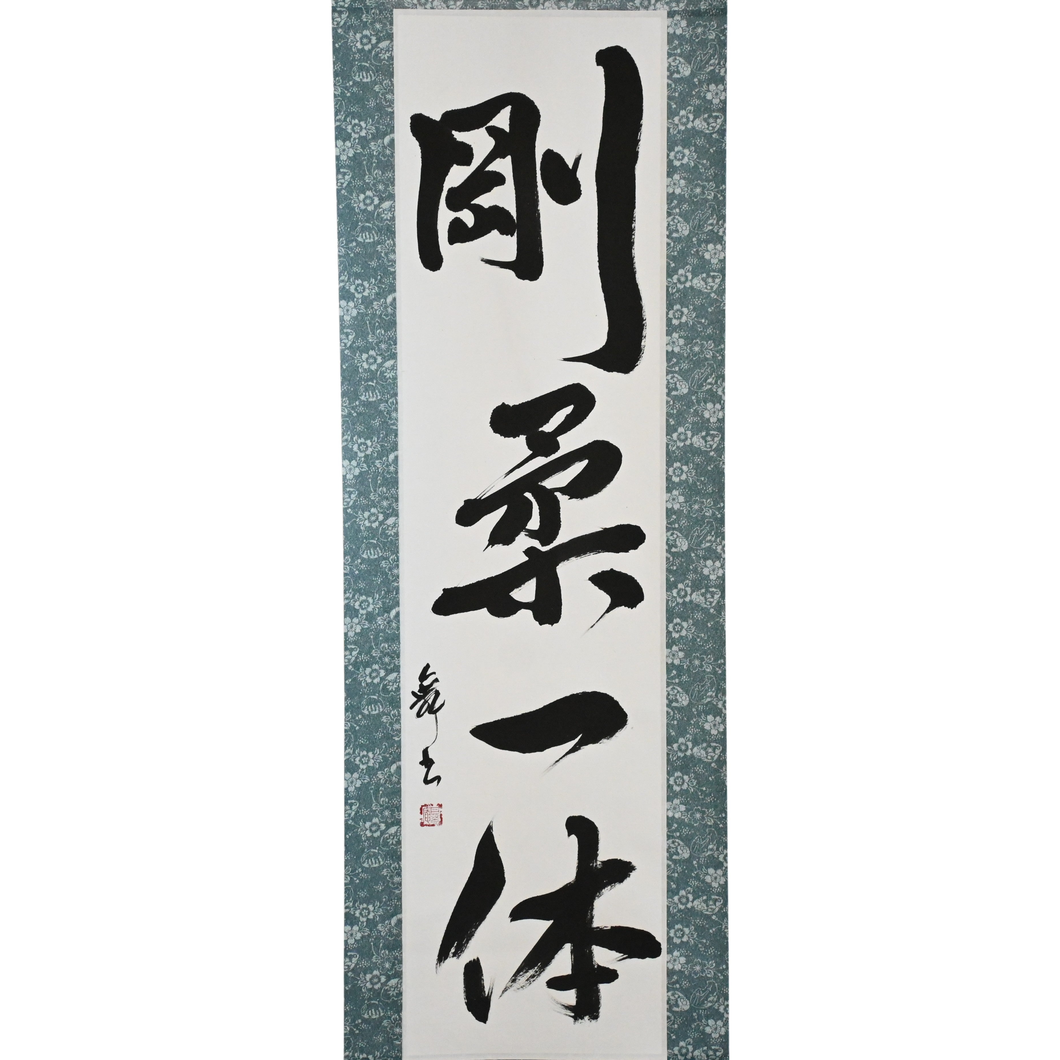 This Japanese calligraphy scroll features the phrase 剛柔一体 (Gōjū Ittai) — a profound concept that lies at the heart of Karate philosophy, especially in 剛柔流 (Gōjū-ryū), one of its most revered traditional styles.